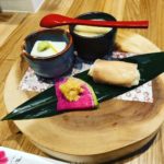 本日のお通し(2名様分)です 里芋のねり豆腐 無農薬小松菜のお浸し ...